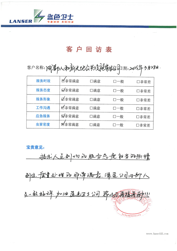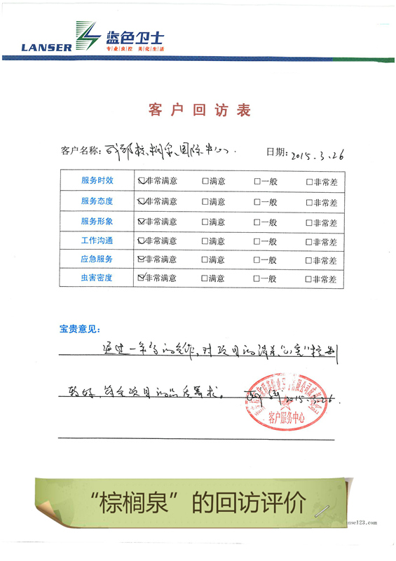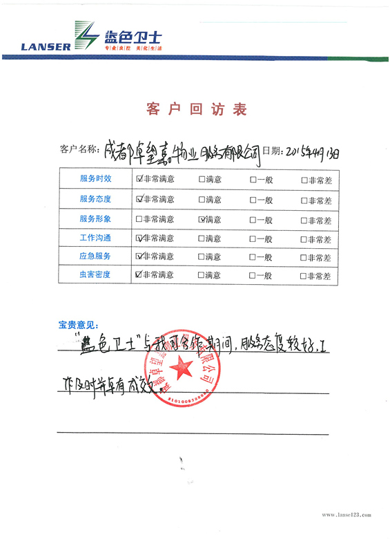 通過(guò)合作,對(duì)四害的消殺控制的很好,符合項(xiàng)目品質(zhì)要求!